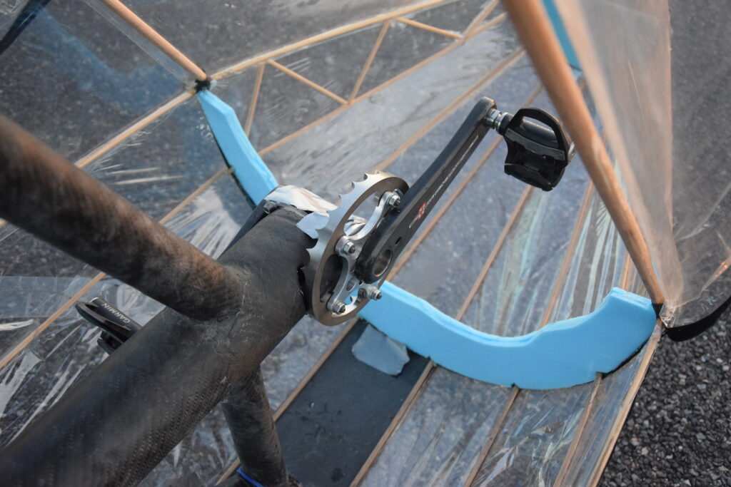 Charles, however, surprised everyone by showing up with an EPA: electric powered aircraft. Originally meant as a small and fast HPA, this experimental aircraft was given electric propulsion because of the high power requirement. The different construction techniques proved to work just fine, and the EPA did many taxi trials and ground runs. The design fits the sub-70-kg aircraft class in the UK, where microlight aviation innovation is happening. This class does not exist in the Netherlands.