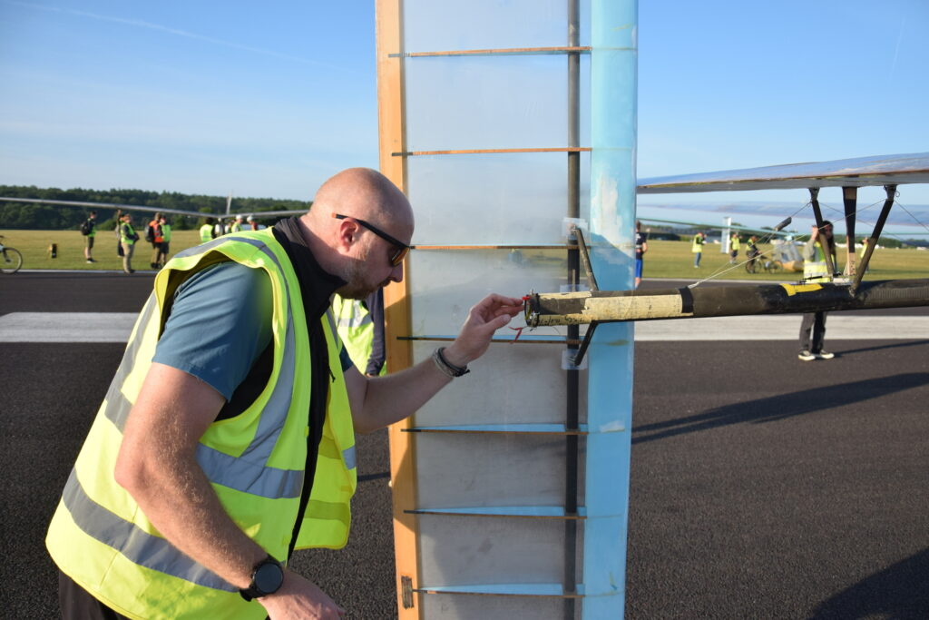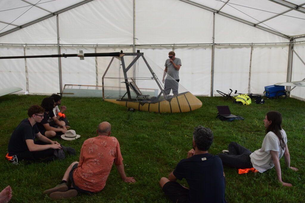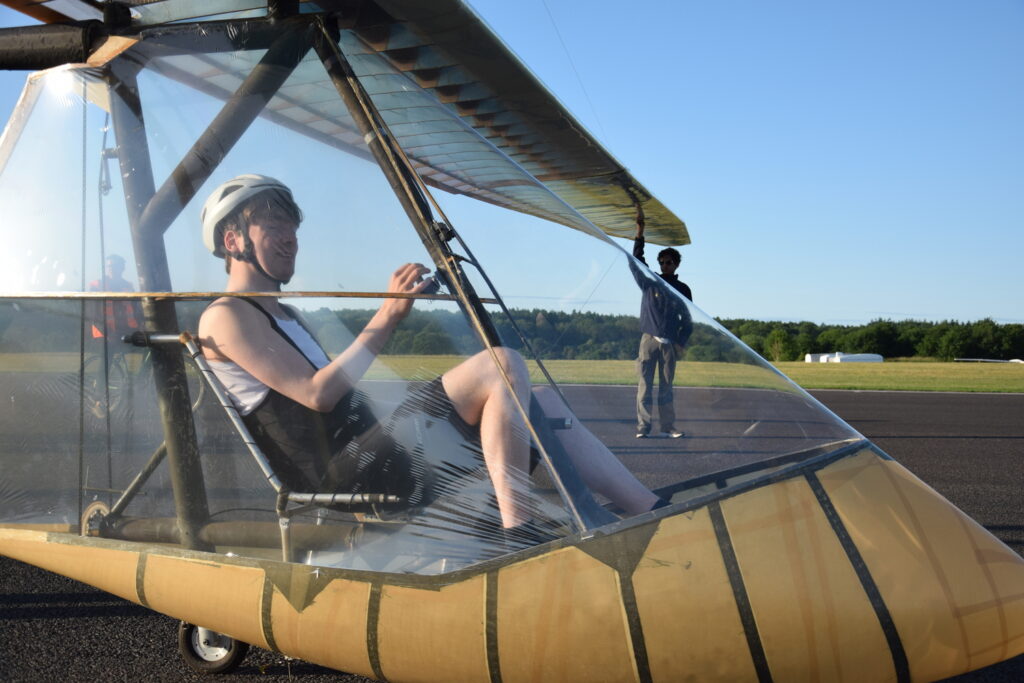 Barney brought some staff and students over for flight operations this Icarus Cup, and to witness the magic of human powered flight. I volunteered to help out as pilot because of my extensive HPA flight experience.
