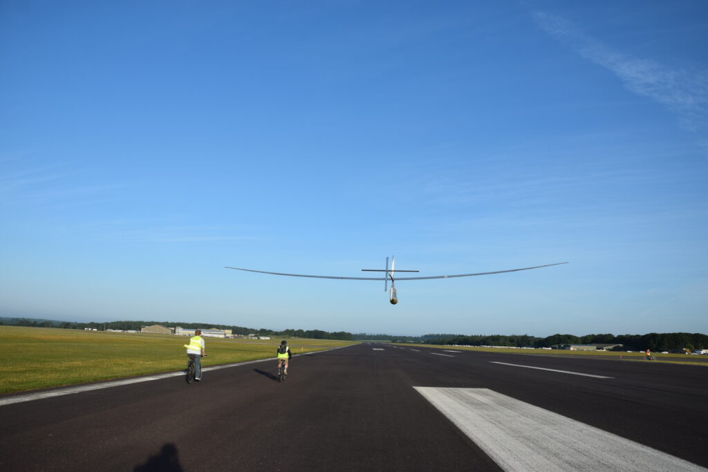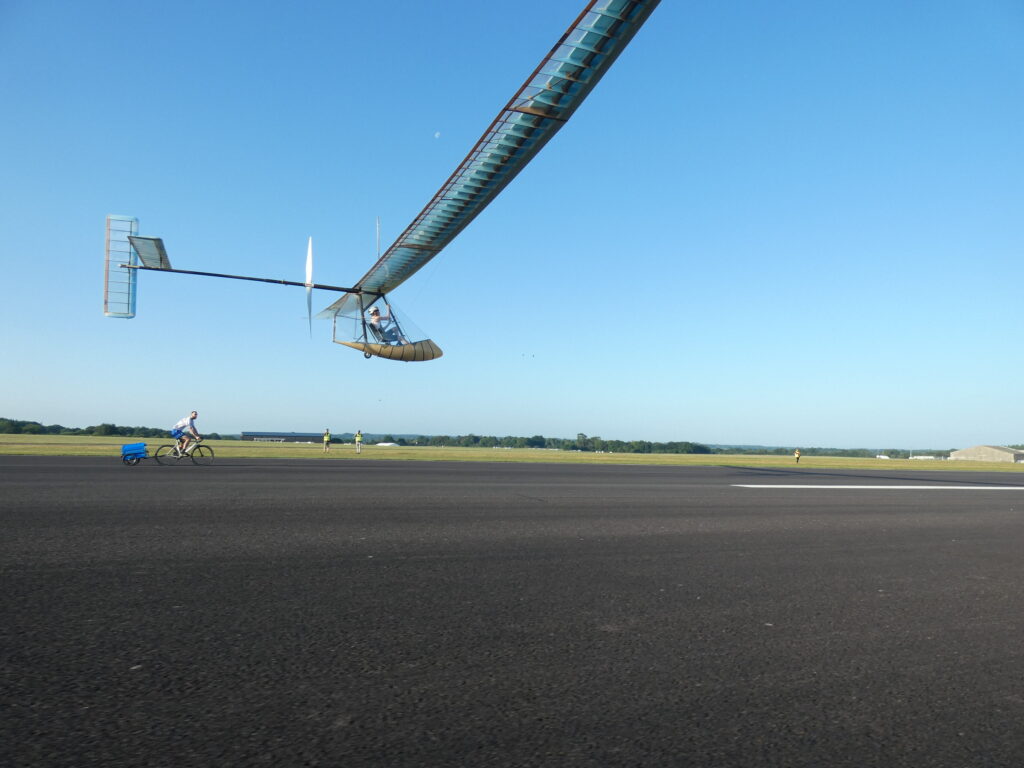 Over these days I made some short and long flights in Airglow. It flies a bit easier than Aerocycle 301, which I flew in previous years. Airglow was beautifully trimmed out in pitch. Without crosswind, you could fly it hands-off! The electronic controls (‘fly by wire’) worked fine, but a purist would rather have the controls also human powered.